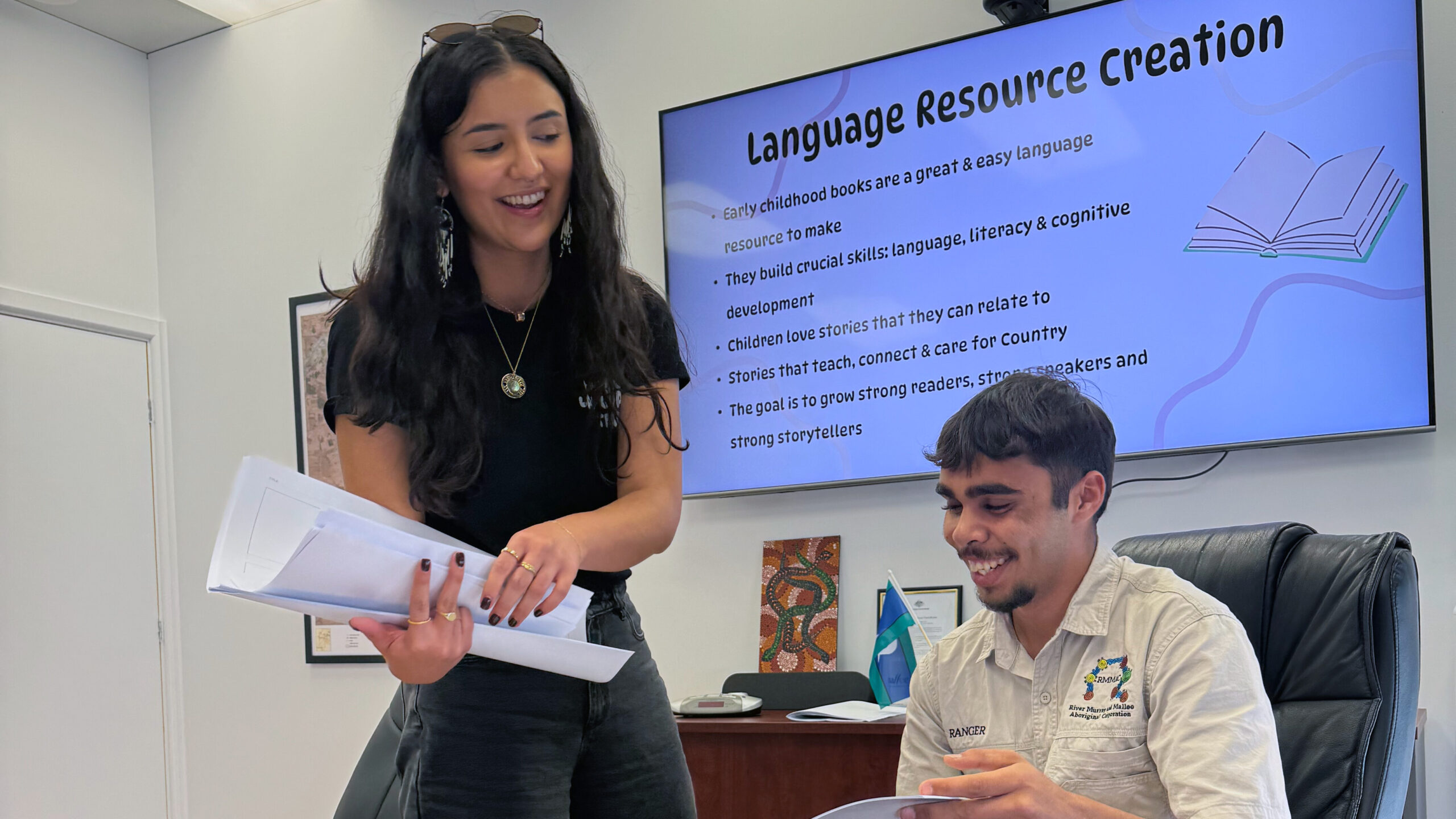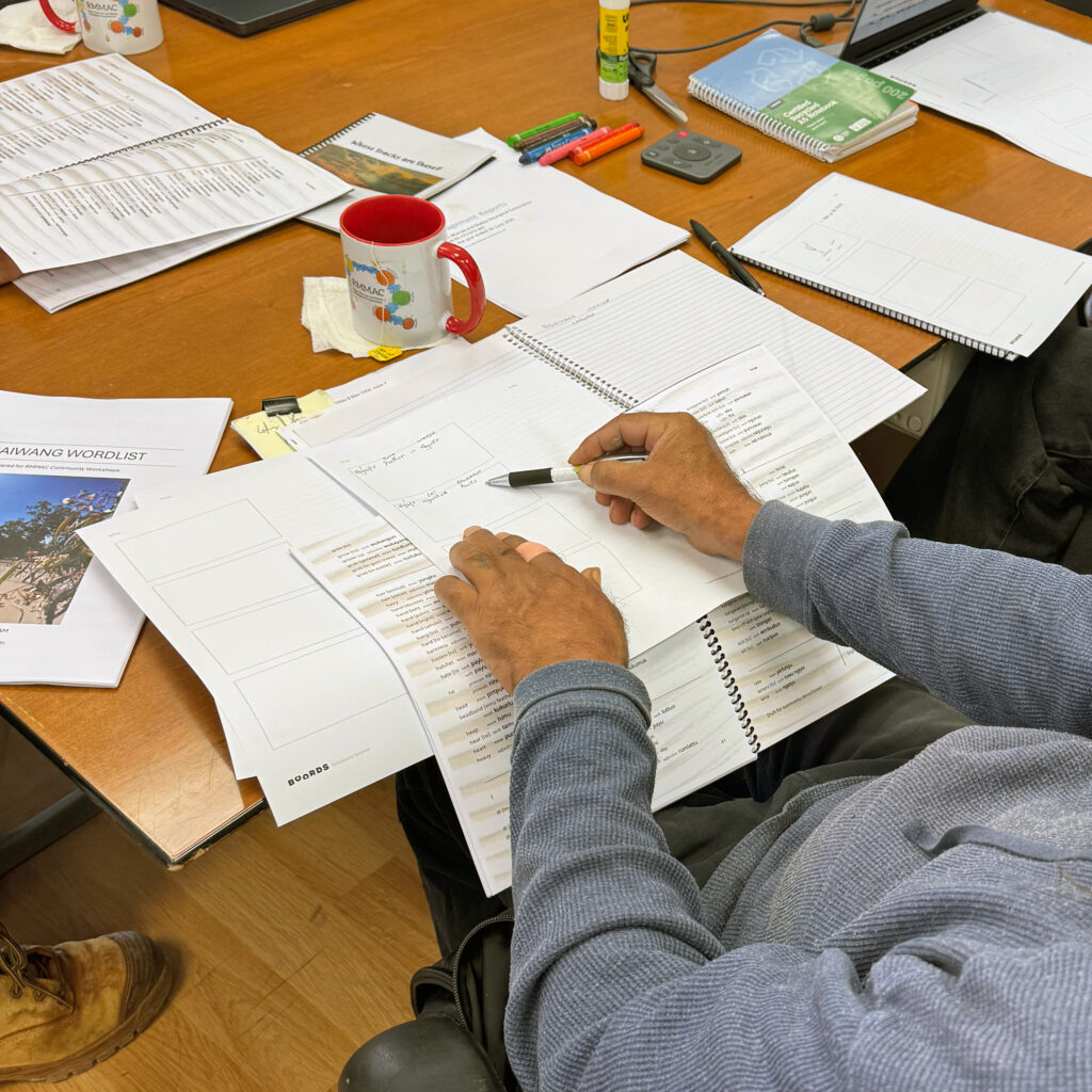 In November 2025, the MLT travelled to Berri to deliver a Ngaiwang storybook workshop at the River Murray and Mallee Aboriginal Corporation (RMMAC) office. The day brought together community members and RMMAC staff for a creative and language-filled workshop focused on Ngaiwang, an important language of the River Murray River region.